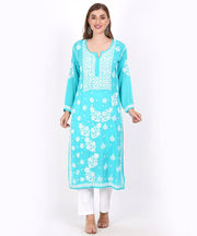 3D Work Viscose Hand-Embroidered Lucknowi Viscose Kurta